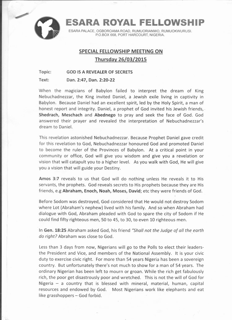 Special Followship Meeting On Thursday 26th March 2015